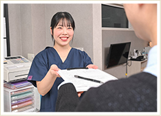 受付で問診票をお渡ししますので、ご記入をお願いします。